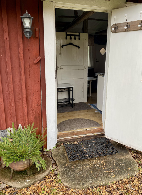 Röda stugan till vänster i bild hyr vi också ut.