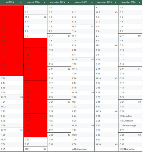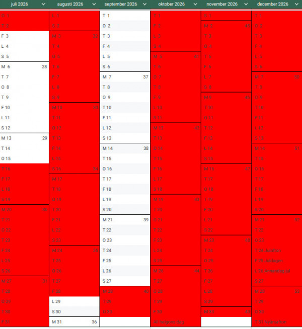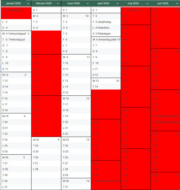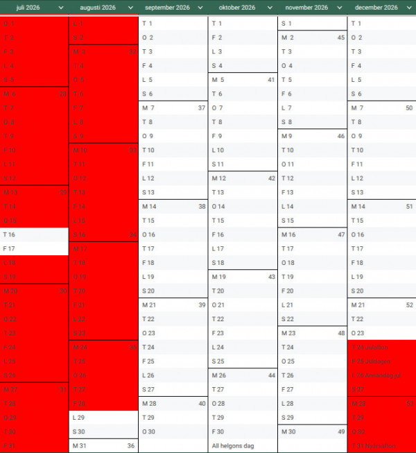- Utcheckning valfri dag senast 18.00 om inget annat är överenskommet.