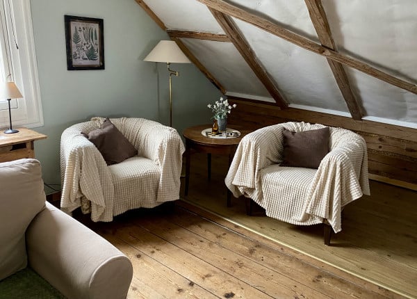 - Husdjur välkomna. Vi uppskattar om de inte lämnas ensamma på övervåningen.